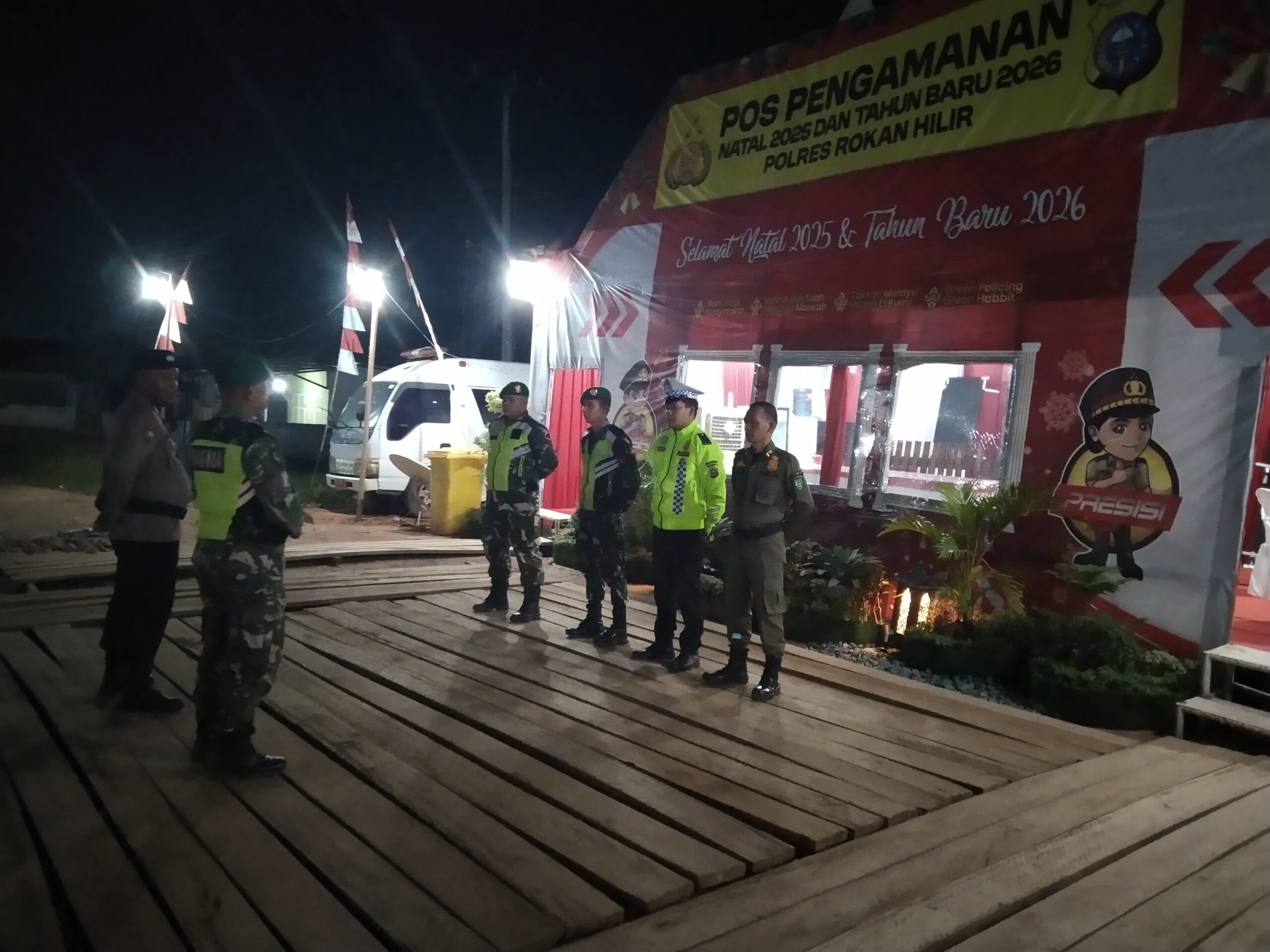 BANGKOPUSAKO ,Bandamuaonline.com — Dalam rangka menjaga stabilitas keamanan dan ketertiban masyarakat menjelang perayaan Natal dan Tahun Baru (Nataru) 2026, Lima Babinsa 05 / RM Kodim 0321/ Rohil yang dipimpin Serka Paimen mengintensifkan kegiatan patroli di wilayah Pos Pam Nataru Jalan Lintas Riau – Sumut Km 8 Kepenghuluan Bangko Permata Kecamatan Bangko Pusako Kabupaten Rohil Selasa (30/12/2025)