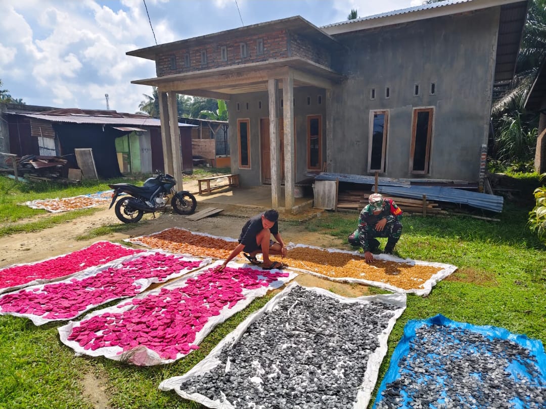 BANGKOPUSAKO ,Bandamuaonline.com — Demi memberikan hasil yang maksimal, Babinsa Koramil 0321-05/RM Kopda Kusheriyanto melaksanakan kegiatan pendampingan UMKM Mandiri pembuatan kerupuk milik Bapak Rahmad warga Kepenghuluan Bangko sempurna