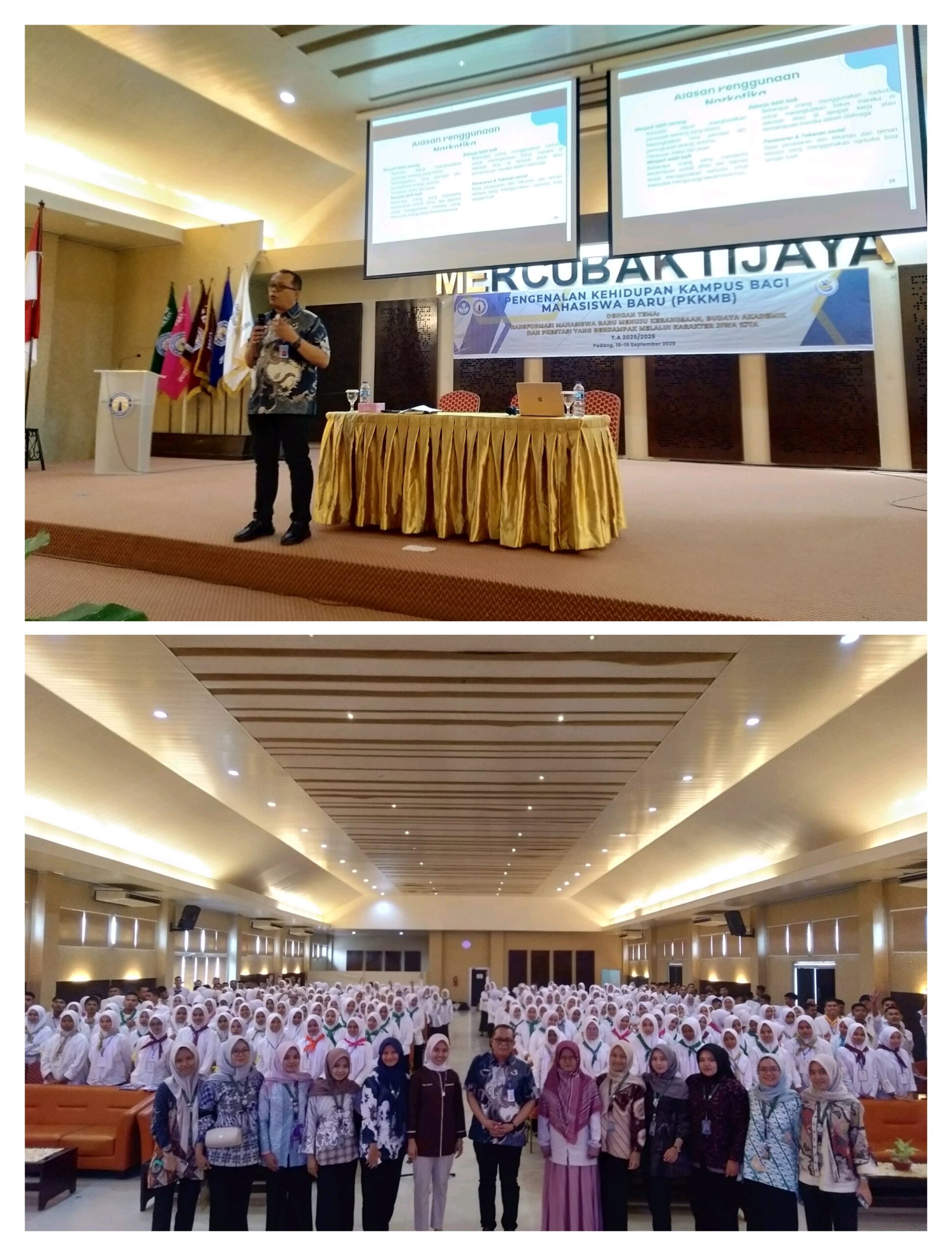 PADANG ,Bandamuaonline.com — Penyidik Madya BNNP Sumbar, Kombes Pol Dr. Azwar, M.Si, MH, menjadi narasumber dalam kegiatan Pengenalan Kehidupan Kampus bagi mahasiswa baru di Universitas Marcubaktijaya Padang. Kegiatan diikuti oleh 370 orang mahasiswa baru yang memadai Auditorium kampus Universitas Mercubaktijaya, Selasa (16/9).