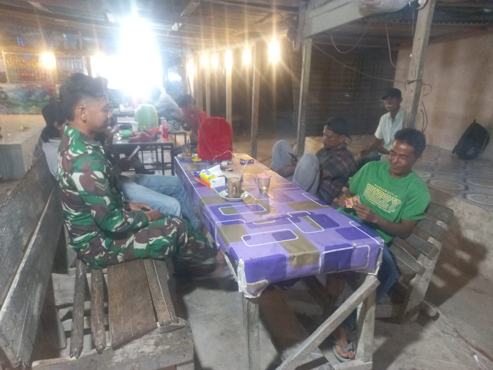Sertu Akbar Sinamo bersama Pemuda setempat melaksanakan patroli secara bergantian ke permukiman warga. Selain itu personel TNI juga melaksanakan patroli dialogis, memberikan imbauan kepada masyarakat.