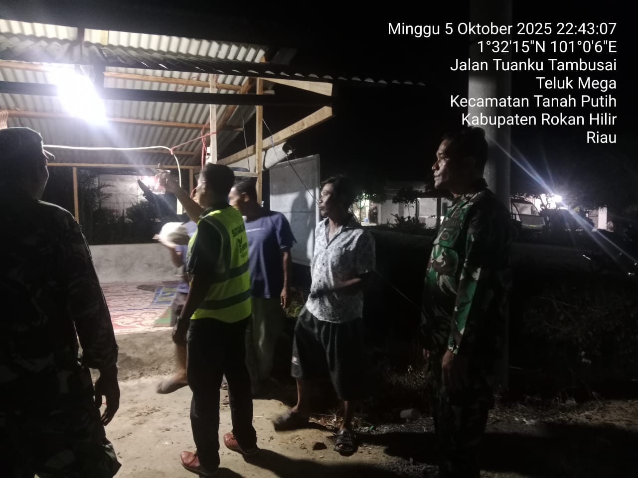 TANAHPUTIH ,Bandamuaonline.com—- Dalam rangka penguatan Binter dan memastikan keamanan kampung warga, Dua personel koramil 02/ TP Kodim 0321/ Rohil Serka S. Hasibuan dan Serda R. Sipahutar bersama Ketua RT 02 Junaidi beserta masyarakat melaksanakan Patroli Siskamling dalam rangka penguatan Binter untuk mengaktifkan kembali pelaksanaan Kegiatan Siskamling diwilayah Kepenghuluan Teluk mega Kecamatan Tanah Putih Kabupaten Rokan Hilir Pada Minggu Malam (5/10/2025)