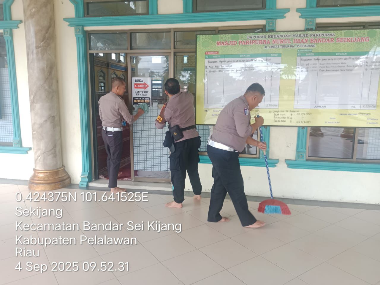 Kegiatan Bakti Religi ini dipimpin oleh Kapolsek Bandar Sei Kijang IPTU BAMBANG SPT dan diikuti oleh beberapa personil Polsek Bandar Sei Kijang, serta pengurus Masjid Paripurna Nurul Iman. Kegiatan ini bertujuan untuk membersihkan seputaran Masjid dan meningkatkan kepuasan publik terhadap POLRI.