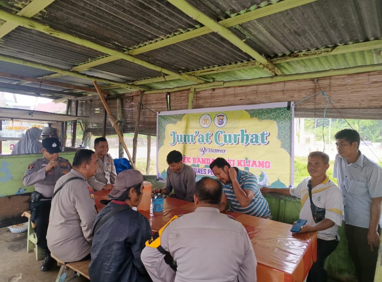 PELALAWAN ,Bandamuaonline.com – Polsek Bandar Sei Kijang melaksanakan kegiatan Jumat Curhat di Warung Bu Yus, Jl. Lintas Timur KM 34, Kec. Bandar Sei Kijang, Jumat (19/12/2025) pukul 09.00 WIB. Kegiatan ini bertujuan untuk meningkatkan kepercayaan masyarakat terhadap Polri dan mencari solusi atas permasalahan yang ada di tengah masyarakat.