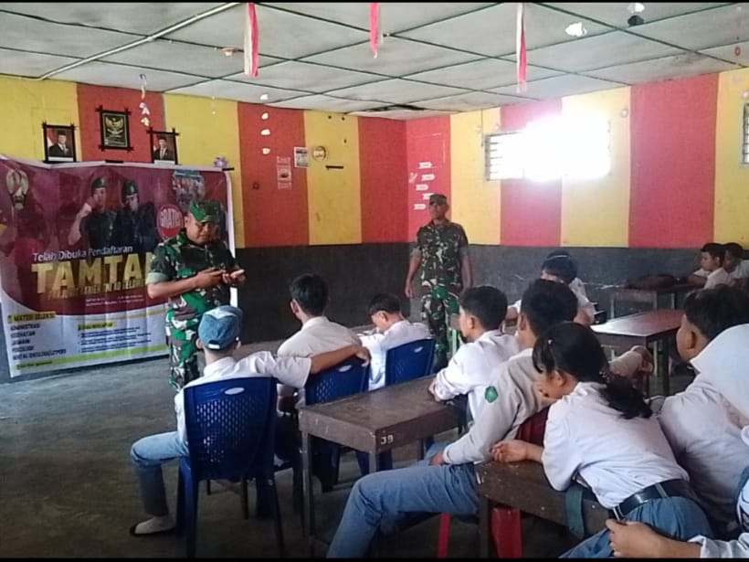BANGKOPUSAKO ,Bandamuaonline.com —- Dalam Rangka Sosialisasi tentang Rekrutmen Prajurit Tentara Nasional Indonesia ( TNI ) Angkatan Darat ( AD), Enam Anggota Koramil 0321-05 /RM yang dipimpin Serma Syahrial melaksanakan kegiatan Sosialisasi Penerimaan Bintara dan Tamtama Prajurit Karier TNI AD TA 2026 di SMK Nusantara Balam Km 21 Kepenghuluan Bangko Sempurna Kecamatan Bangko Pusako Selasa (20/1/2026)