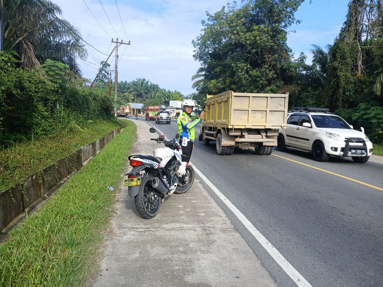 PELALAWAN ,Bandamuaonline.com – Unit Lantas Polsek Bandar Sei Kijang melaksanakan patroli dan pengaturan arus lalu lintas di Jalan Lintas Timur KM. 25 s/d 38 Kec. Bandar Seikijang, Kab. Pelalawan, Selasa (16/12/2025) pukul 08.00 WIB.