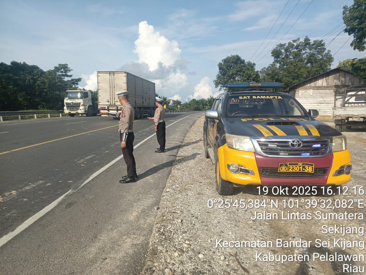 PELALAWAN ,Bandamuaonline.com – Unit Lantas Polsek Bandar Sei Kijang melaksanakan giat preventif patroli dan pengaturan arus lalu lintas di Jalan lintas Timur KM. 25 s/d 38 Kec. Bandar Seikijang, Kab. Pelalawan. Kegiatan ini dilaksanakan pada hari Minggu, 19 Oktober 2025, pukul 16:00 WIB s/d selesai.