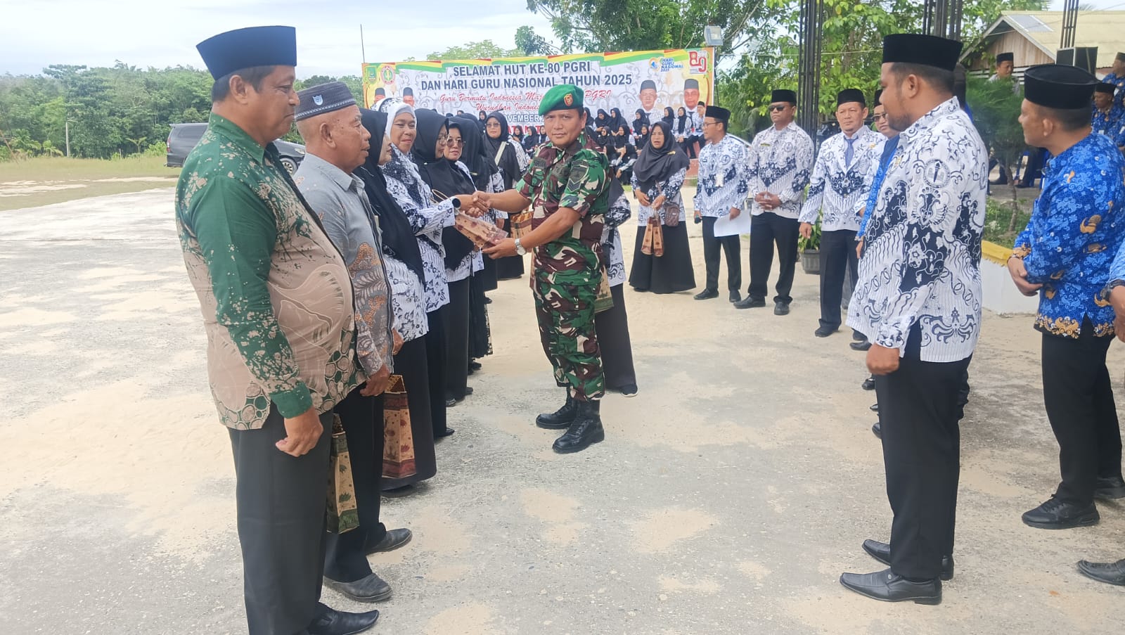 TANAHPUTIH ,Bandamuaonline.com — Dalam rangka menyambut Hari Guru Nasional 2025 dan HUT PGRI ke-80 tahun 2025, Komandan Koramil ( Danramil ) 02 / TP Kapten Arh Iswandi Sikimbang yang diwakili Babinsa Serka Sulaiman hadiri Kegiatan Upacara HUT PGRI ke-80 dihalaman Kantor Kecamatan Tanah Putih jalan Yahya Addin Kelurahan Sedinginan, Kecamatan Tanah Putih, Kabupaten Rohil Selasa (25/11/2025)