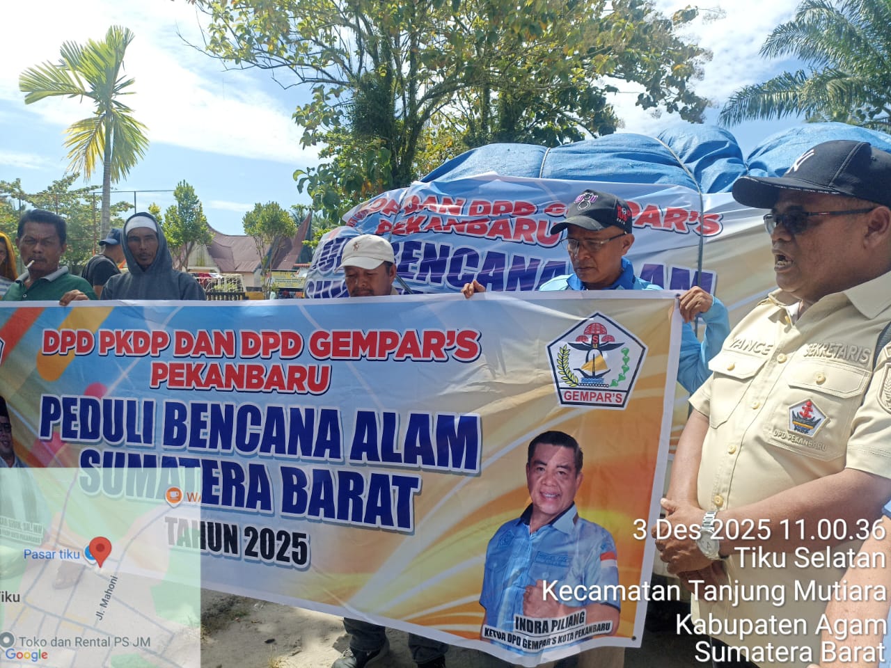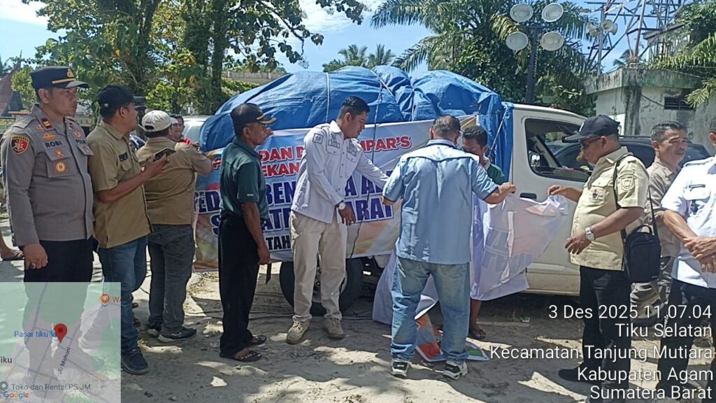TIKU ,Bandamuaonline.com — Wali Nagari Tiku Selatan, Ismardi, S.P, menyampaikan rasa terima kasih yang mendalam kepada DPD PKDP, DPD Gempars Pekanbaru, serta Forum Komunikasi RT/RW Kelurahan Sukaramai Kecamatan Pekanbaru Kota atas bantuan kemanusiaan berupa 1,5 ton beras dan sejumlah kebutuhan pokok lainnya untuk korban bencana alam banjir bandang dan longsor di Kecamatan Tanjung Mutiara, Kabupaten Agam.